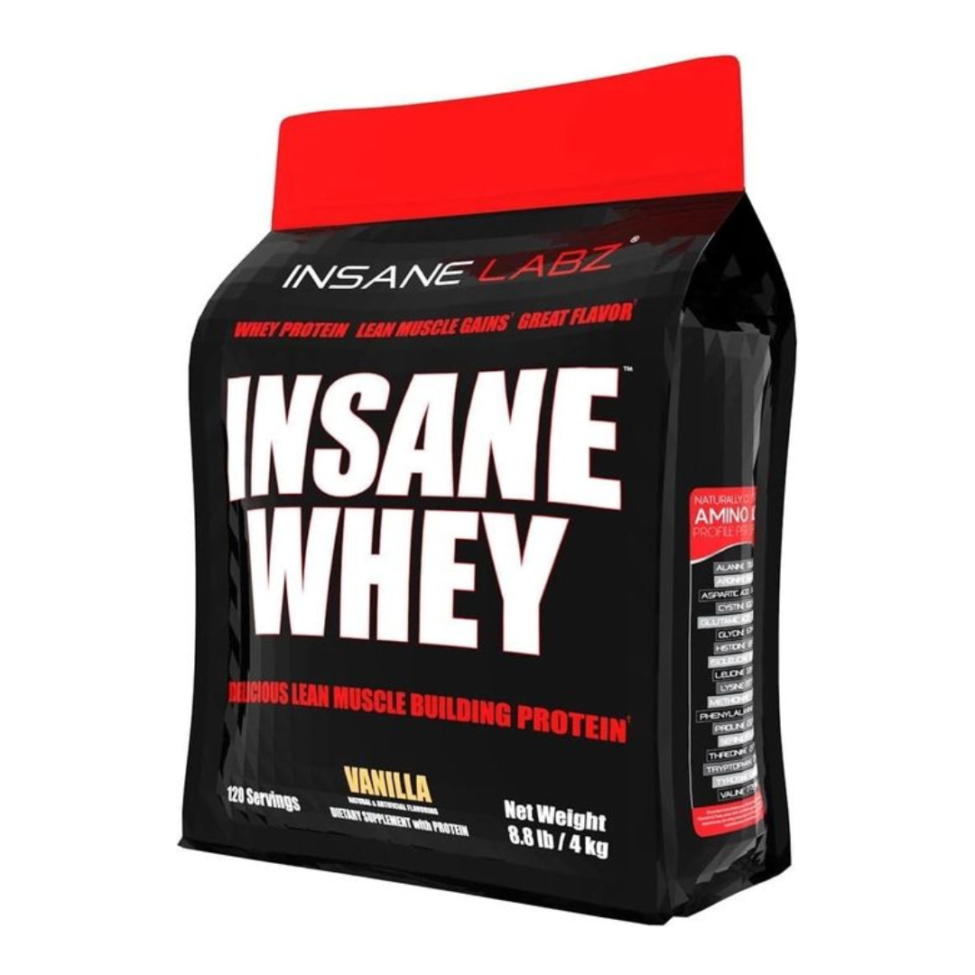 - LEAN MUSCLE GAINS. WHEY PROTEIN. GREAT FLAVORS. Insane Labz Insane Whey promotes lean muscle gains with a full dose of 25g of protein after your workout has ended. With a naturally occurring BCAA amino profile, Insane Whey boosts your recovery time while simultaneously building the lean muscle you need to become a genetic freak-beast.