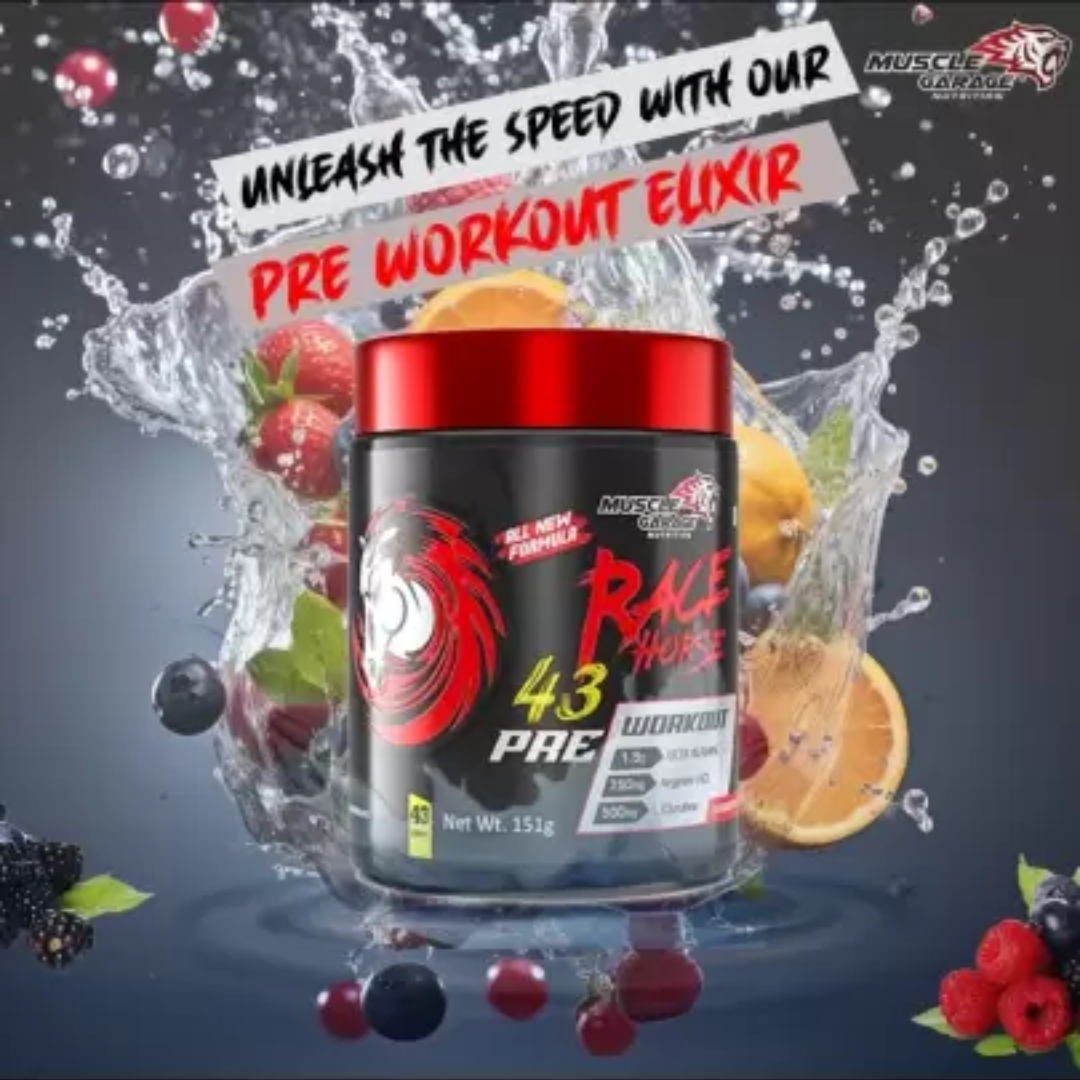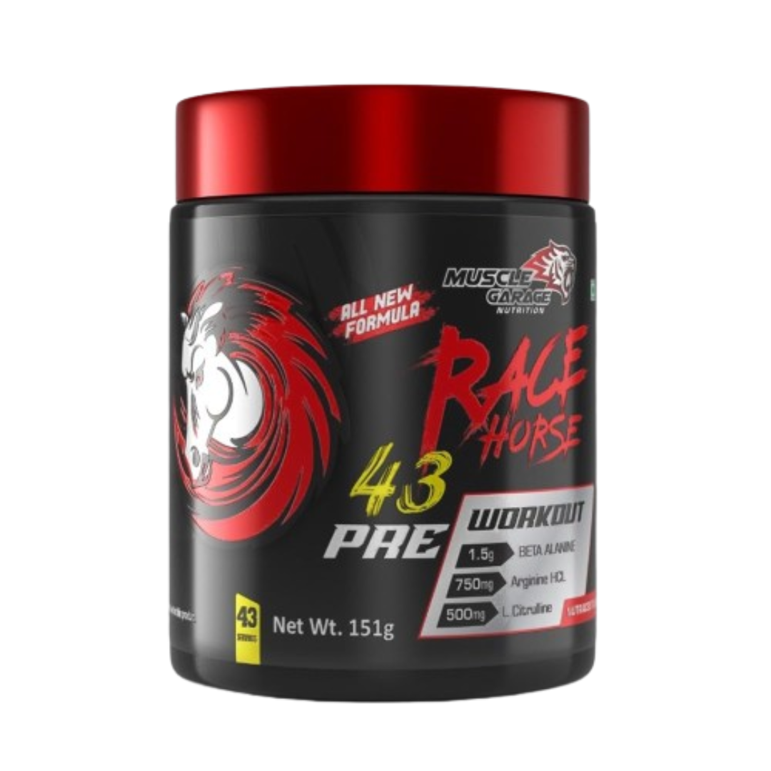 Introducing the Muscle-Garage Race Horse Pre-Workout, a revolutionary formula designed to unleash unparalleled power and endurance in racehorses. Engineered with cutting-edge technology and formulated by top equine nutritionists, this pre-workout supplement is meticulously crafted to optimize performance and elevate your horse’s capabilities on the track. Harnessing the latest advancements in equine sports nutrition, the Muscle-Garage Race Horse Pre-Workout is tailor-made to enhance speed, stamina, and muscular strength. Its unique blend of scientifically-backed ingredients synergistically works to boost energy levels, promote muscle recovery, and amplify focus, ensuring your racehorse reaches its peak potential during training sessions and competitions. Through meticulous research and development, Muscle-Garage has incorporated key components such as creatine monohydrate, branched-chain amino acids (BCAAs), beta-alanine, and specialized vitamins and minerals. These ingredients are carefully calibrated to optimize muscle function, delay fatigue, and support overall performance, enabling your equine athlete to push boundaries and excel in every race.