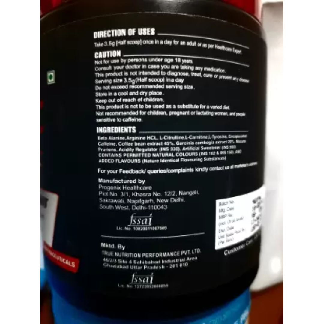 Composition – Alanine 750mg, L cartnine 250mg, L tyrosine 125mg
