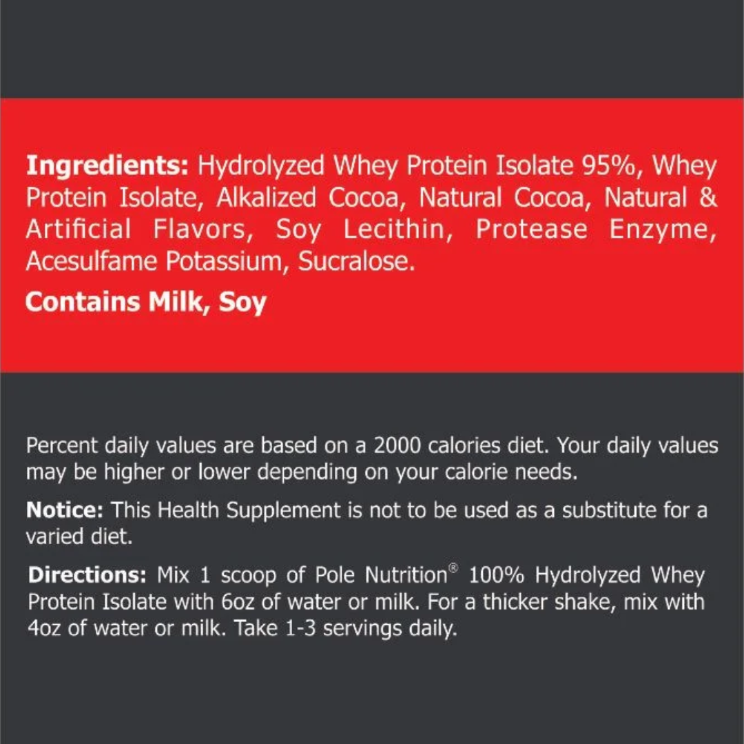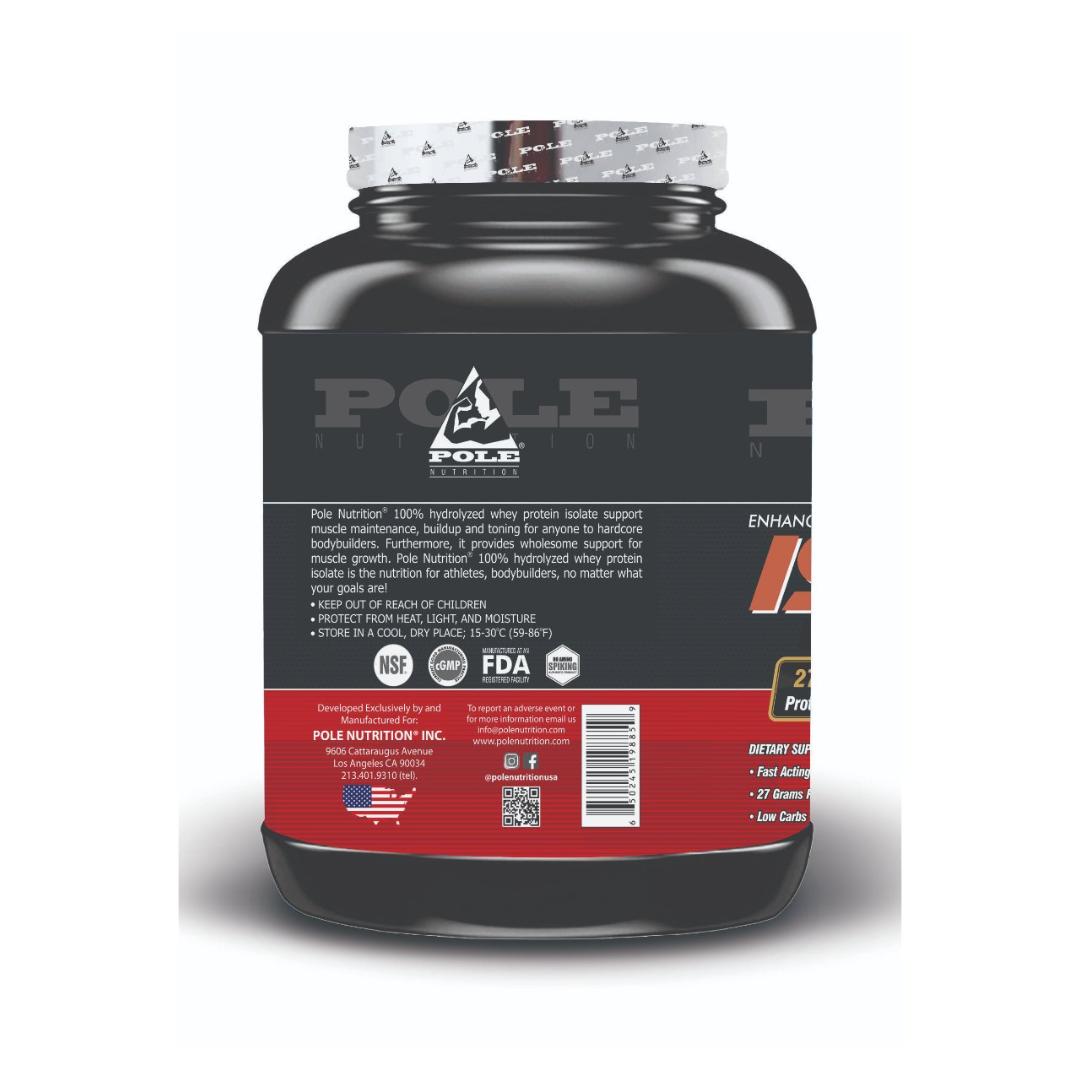 - Pole Nutrition Isolate 100% Hydrolyzed whey assists in the prevention of breakdown of your muscles