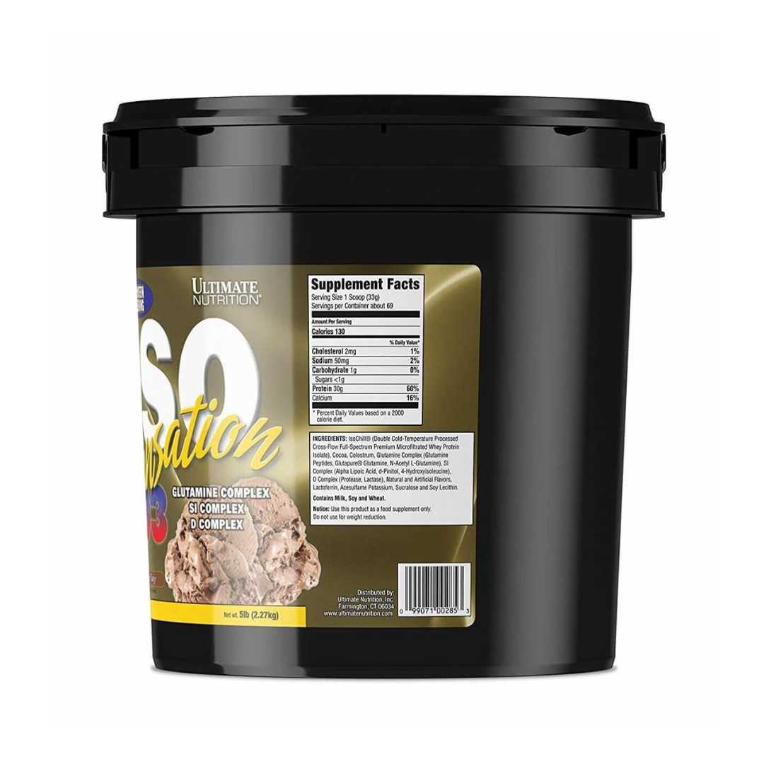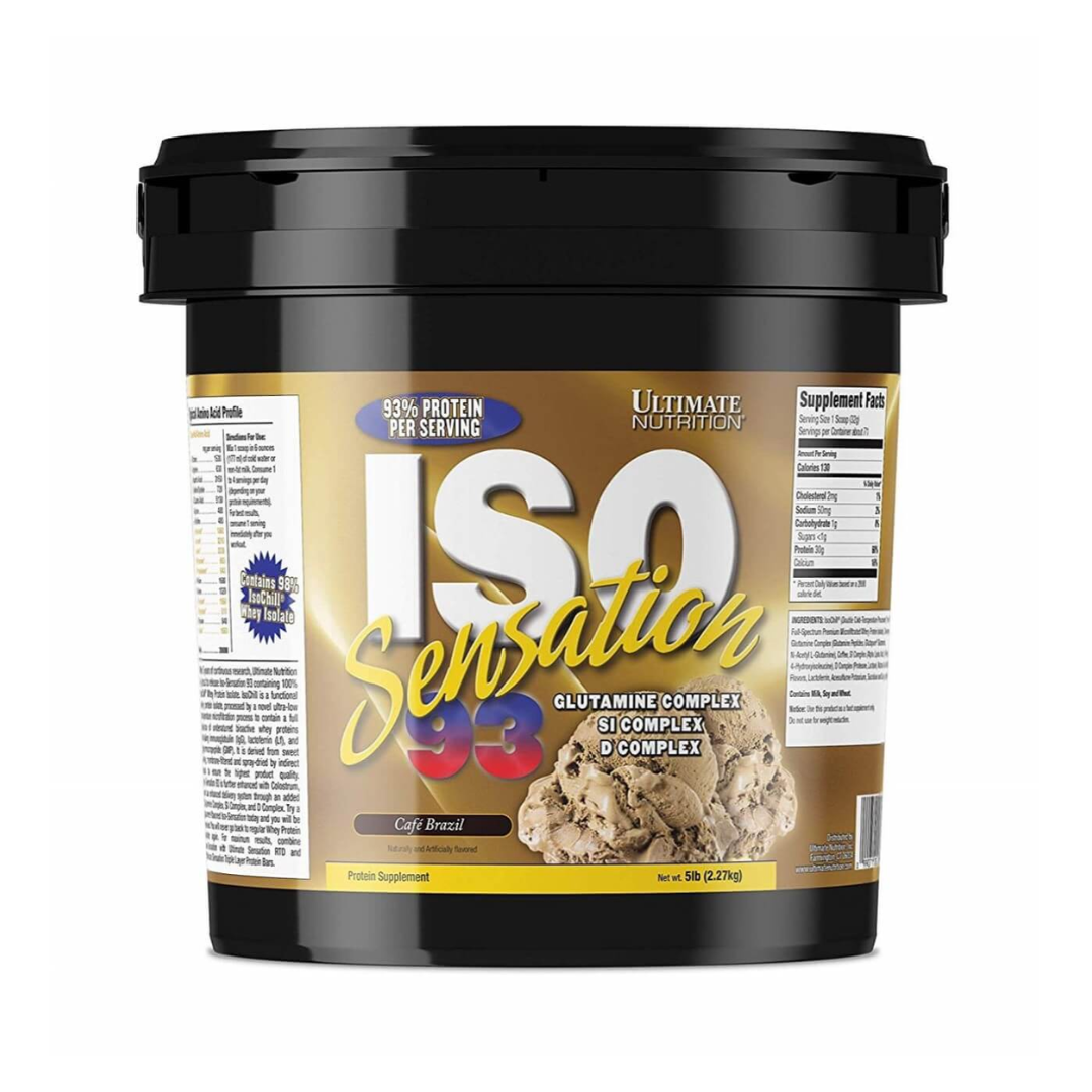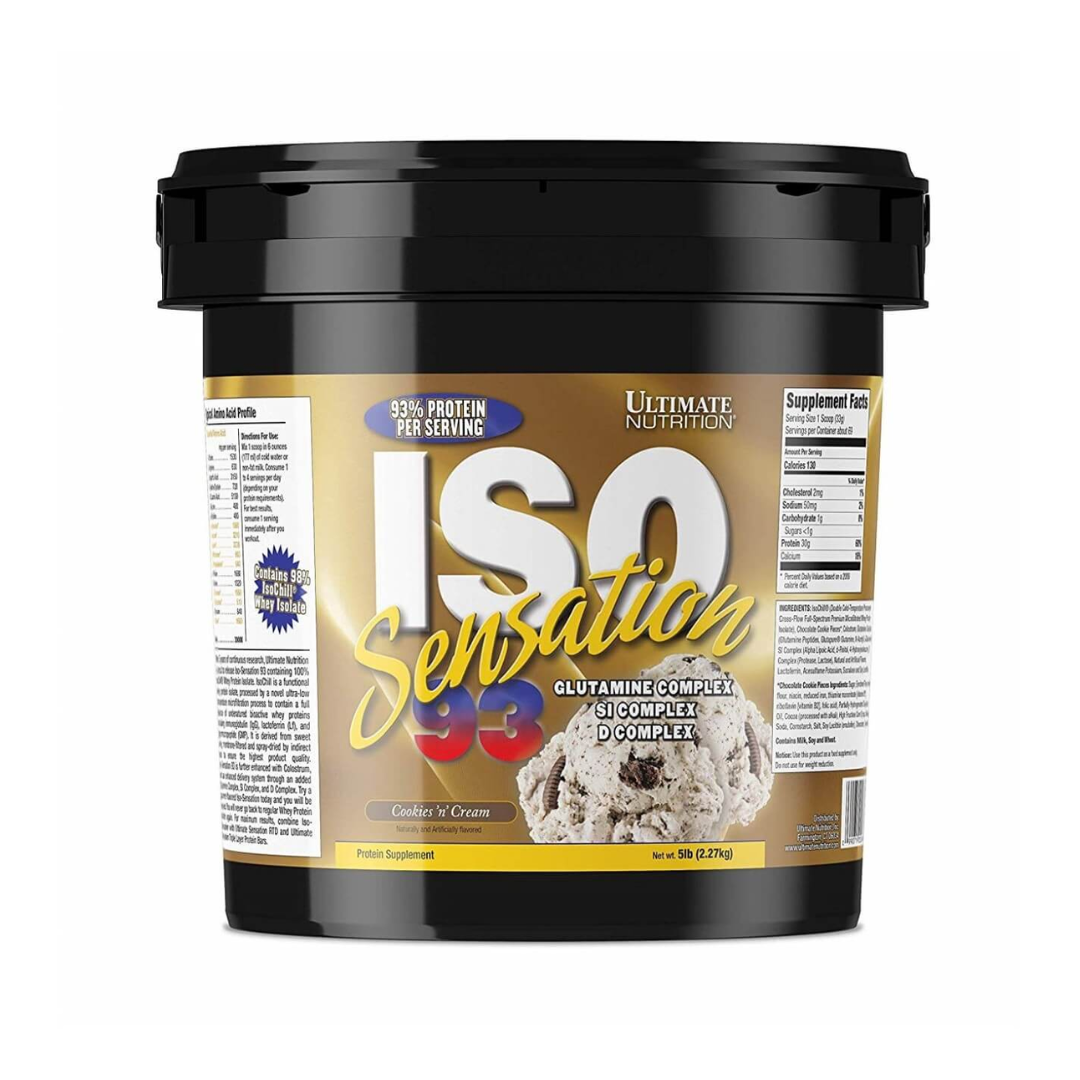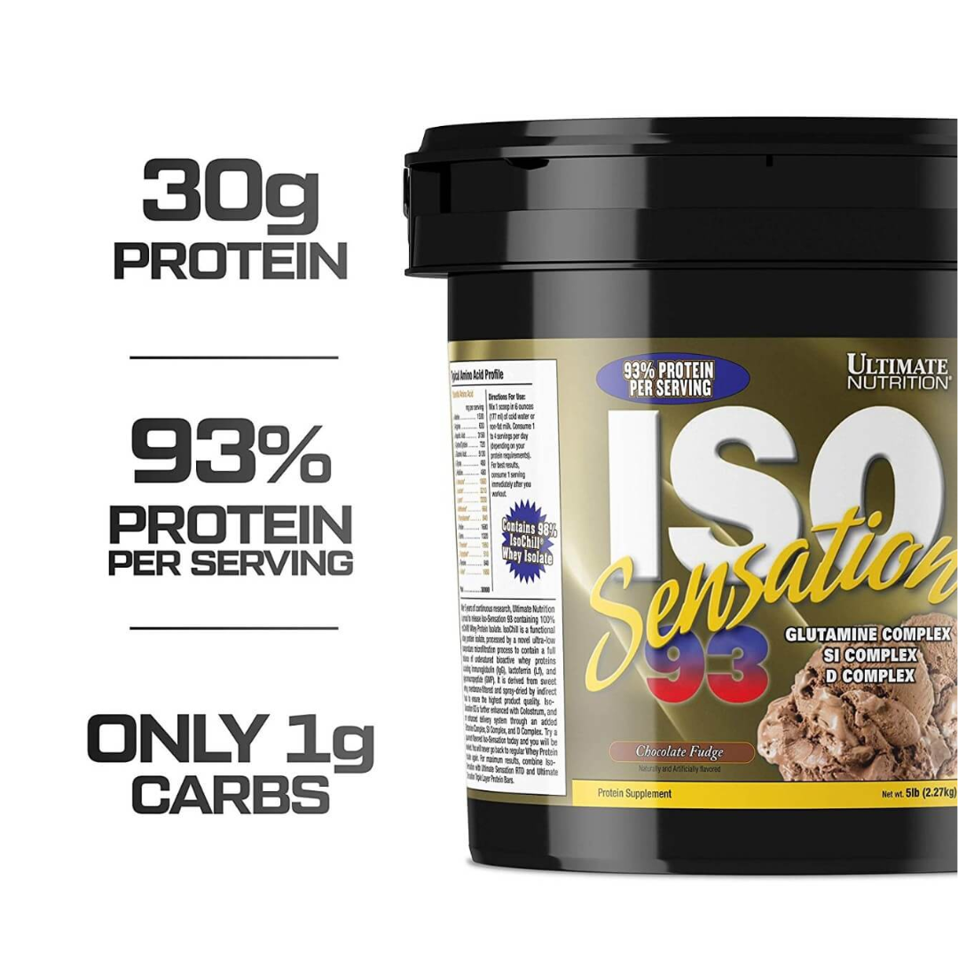 - A serving of Ultimate Nutrition Iso Sensation contains 93% of pure whey protein, and helps in immediate muscle recovery post strenuous workout as well as muscle growth.